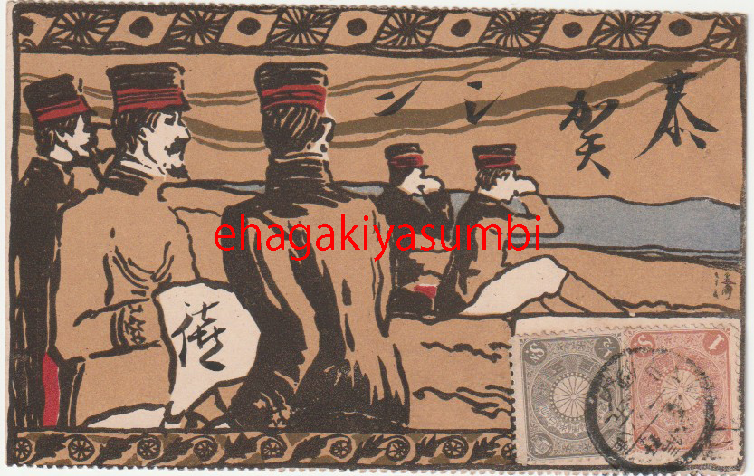 戦前絵葉書■アート イラスト■橋口五葉画 日露戦争図  明治実逓