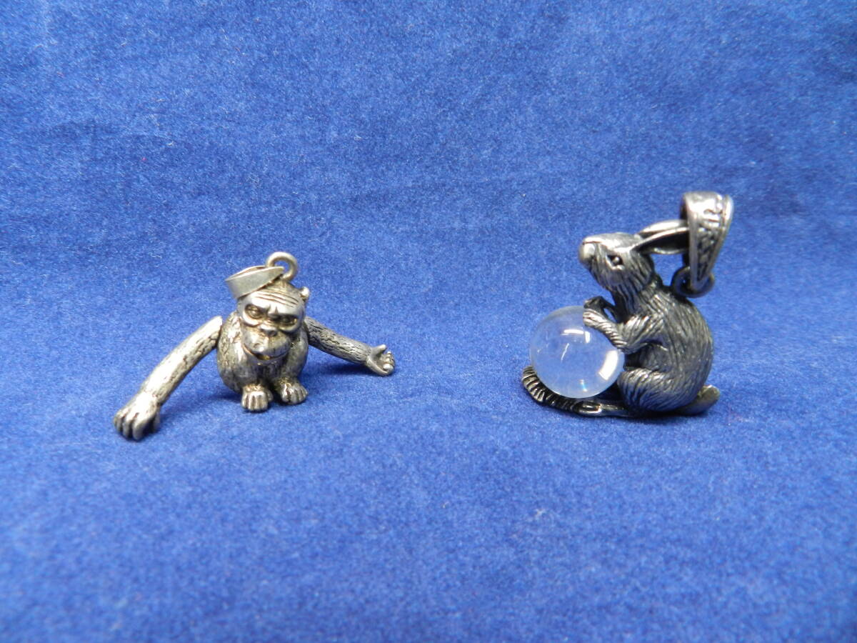 銀製 ペンダントトップ 2点 サル・ウサギ
