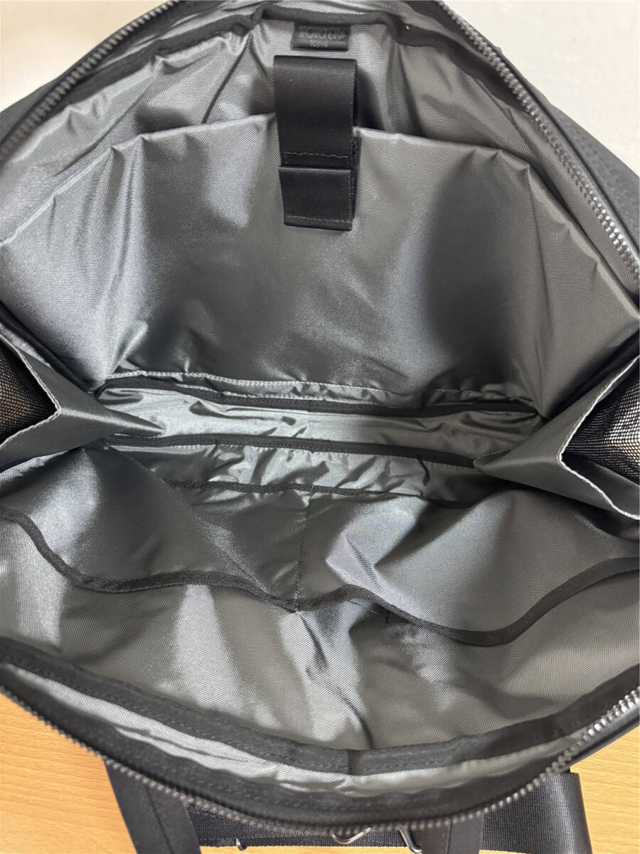 この2WAYブリーフケースは、1層式でB4サイズの書類が入ります。