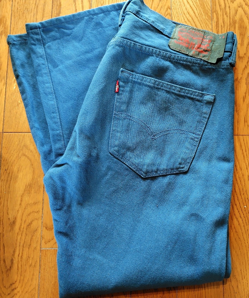 W32 L32 古着 リーバイス 501 カラーデニム ストレートデニム希少 青色ブルー USED メキシコ製 Levi's ターコイズ