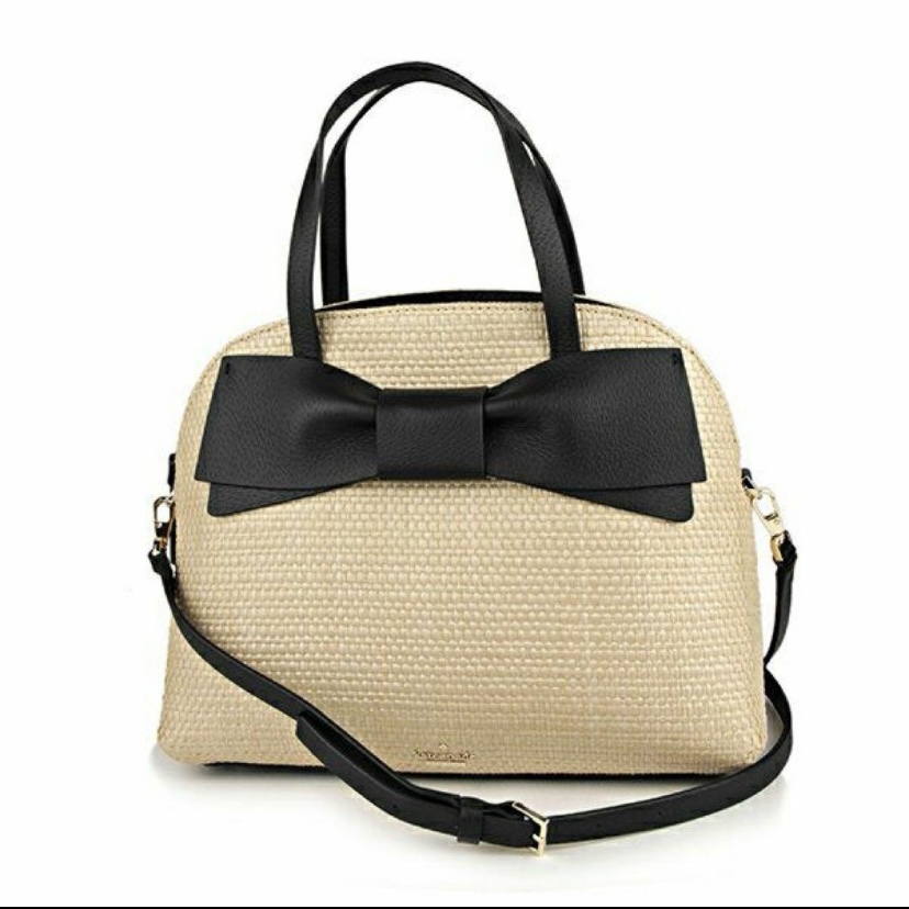 1円〜Kate Spade/ケイトスペード リボンかごバッグ ショルダーバッグ ハンドバッグ レザー内ポケット ブランドバッグ 自立 長財布適応