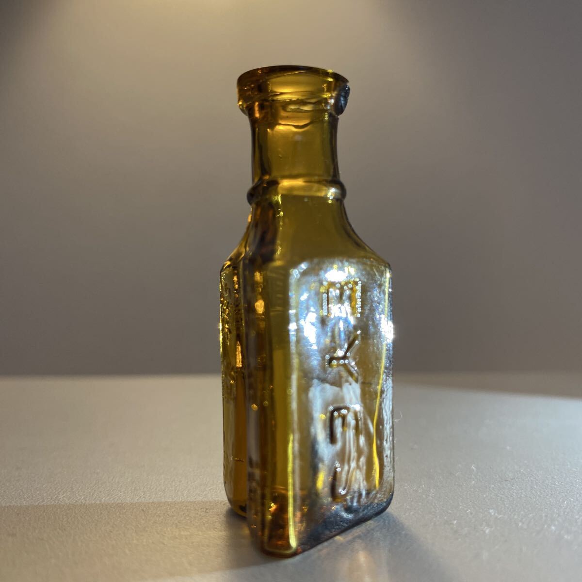 希少 レトロ瓶 目薬 アイス レトロ瓶 薬瓶 戦前ガラス瓶 アンティーク エンボス アンバー 昭和レトロ 戦前 神薬 ガラス瓶