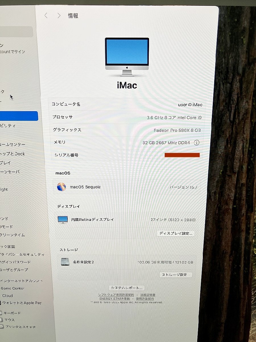 Product name: 【1円スタート】【埼玉発送】【動作確認済】Apple/iMac Core i9 3.6 27 (5K, 2019)/i9-9900K CPU/32GB/SSD121GB/HDD2TB/Sequoia15.7
