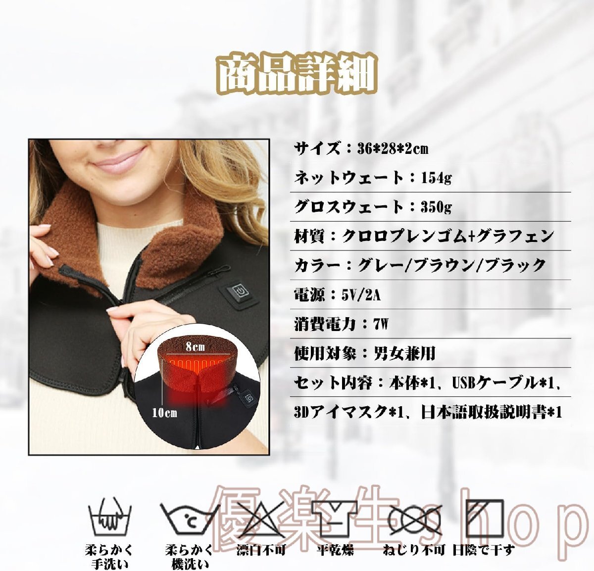 Product name: 電気肩パッド 遠赤外線加熱 ホット首サポーター 電熱ネックウォーマー 電気肩かけ 電気肩あたため 在宅勤務 アウトドア 丸洗い可 yhw102.bk