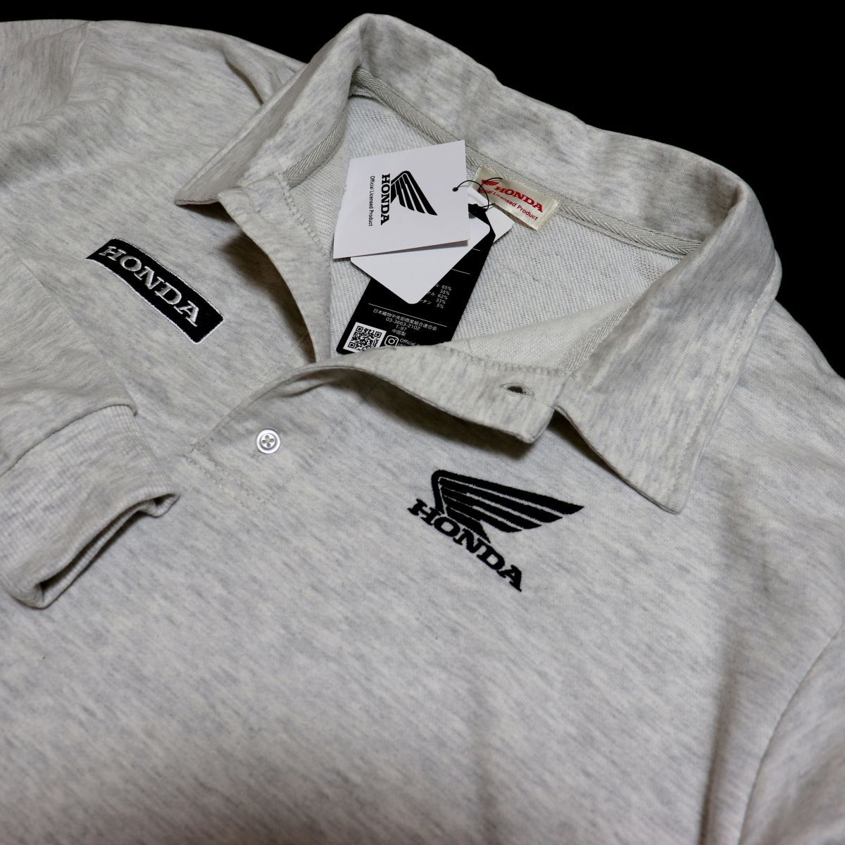 ★ホンダ HONDA 新品 メンズ カジュアル ロゴ刺繍 スウェット ポロシャツ トレーナー 灰 Mサイズ [Q530035NT-GRY-M] 一 三 壱★QWER