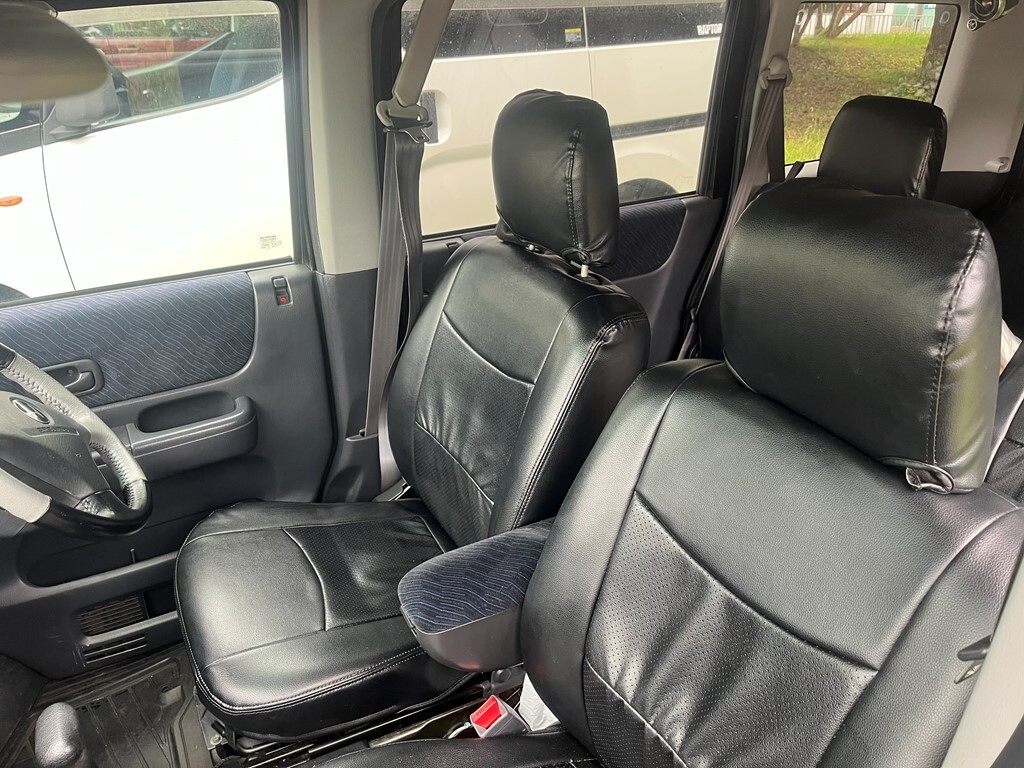 社外シートカバー全席装着(運転席のオプションアームレストにはレザーカバーはありません)