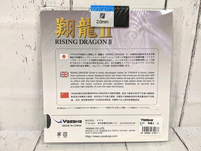 Product name: 9og519/ラバー■ヤサカ 翔龍Ⅱ Rising Dragon2 黒 厚2.0mm■新品【Z29】