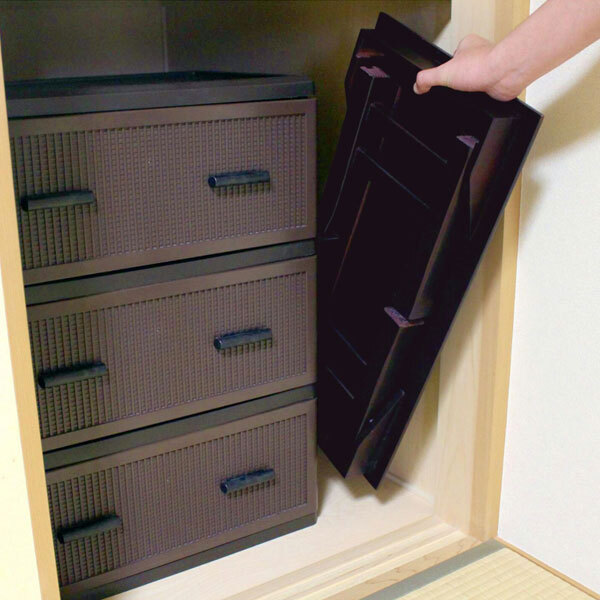 棚板を脚部内に収め折りたためるので、ちょっとした隙間に収納できます。