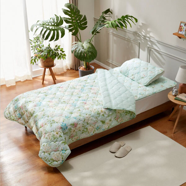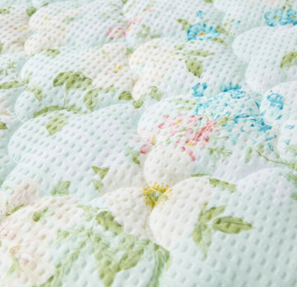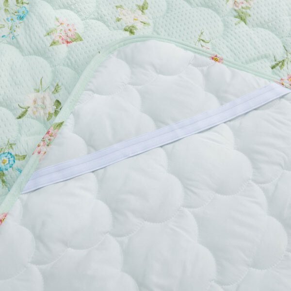 敷きパッドのデザインは、キルトケットの花柄モチーフを使用して、