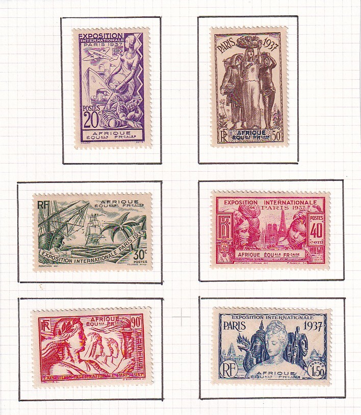 Product name: 11 仏領赤道アフリカ【未使用】<「1937 SC#27-32 パリ万国博覧会」 6種完 on リーフ切取り >