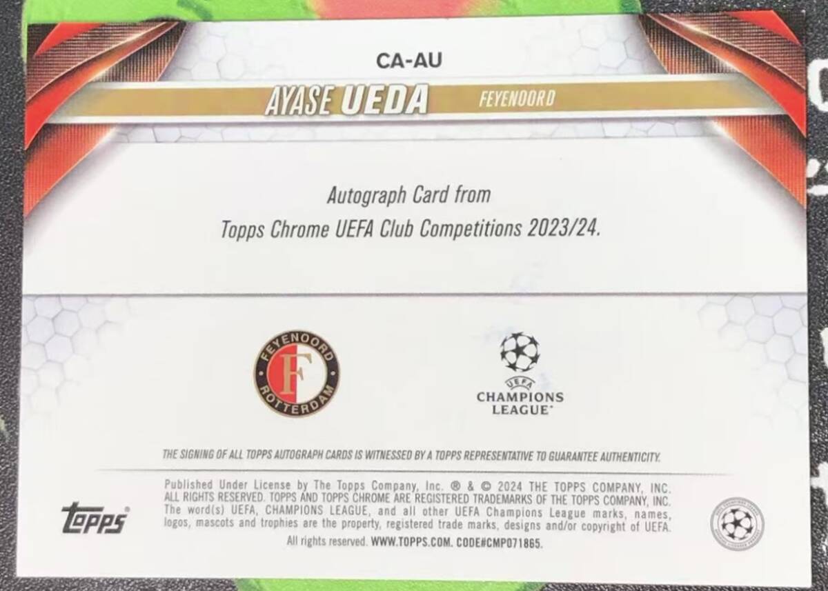 上田綺世 Ayase Ueda Topps Chrome UEFA 2023-24 Auto 直筆 サイン Feyenoord