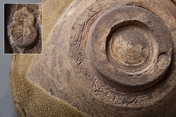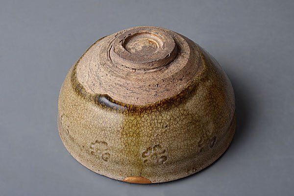 k331【和み】茶道具 時代 黄瀬戸十字花茶碗 検 茶道具煎茶道具中国古玩台湾煎茶民藝美術品李朝高麗新羅清朝書道具