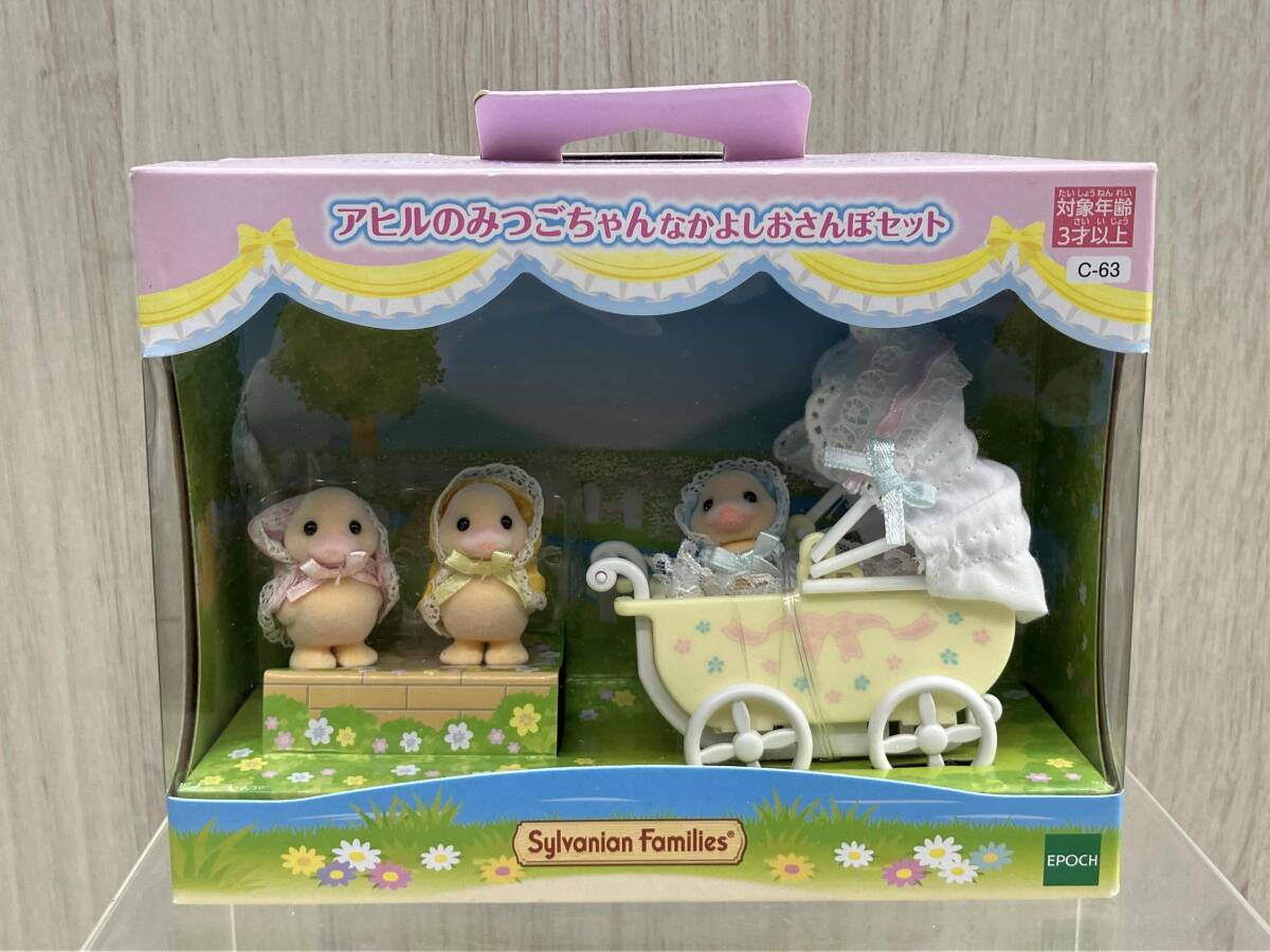[未開封品]シルバニア C-63 アヒルのみつごちゃんなかよしおさんぽセット 外箱角キズあり
