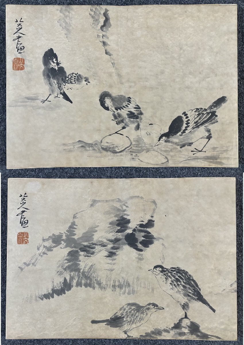 Product name: 【安】中国清時代画家「八大山人書」紙本「花鳥図冊頁 10開」短冊 中国画 墨寶妙品 中国書道 古美術 347