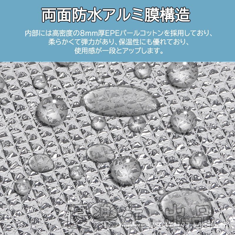 【素材】:表面は防水アルミ膜、内部はEPE発泡ポリエチレン(パールコットン)