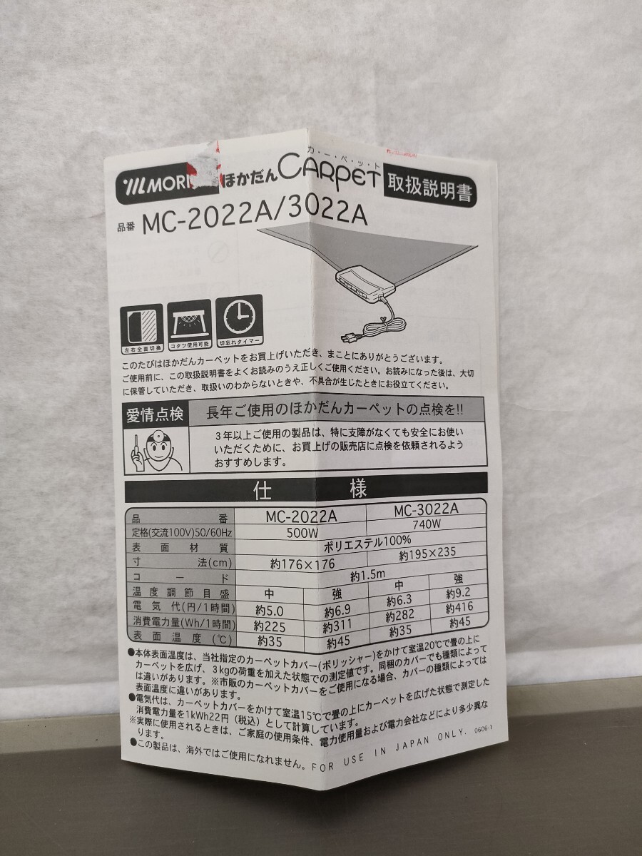 Product name: ホットカーペット MORITA ほかだん カーペット 235×195㎝ 3畳相当 MC-3022A 100V-740W 森田電工 電気カーペット 動作品 美品