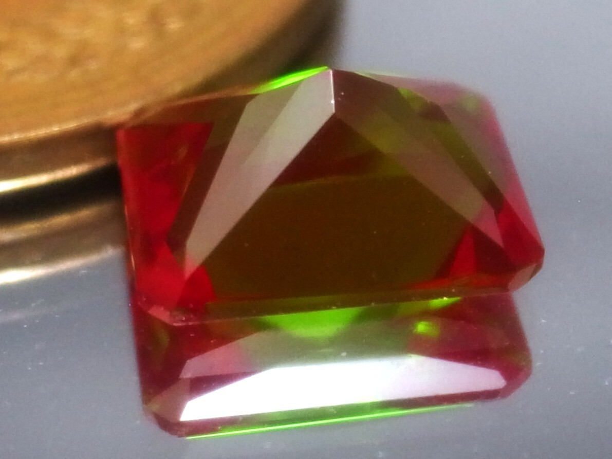 3.10ct b 新品・新色クリスマスカラー(緑&赤)合成人造宝石ヤグセラミック YAG (イットリウム・アルミニウム・ガーネット)