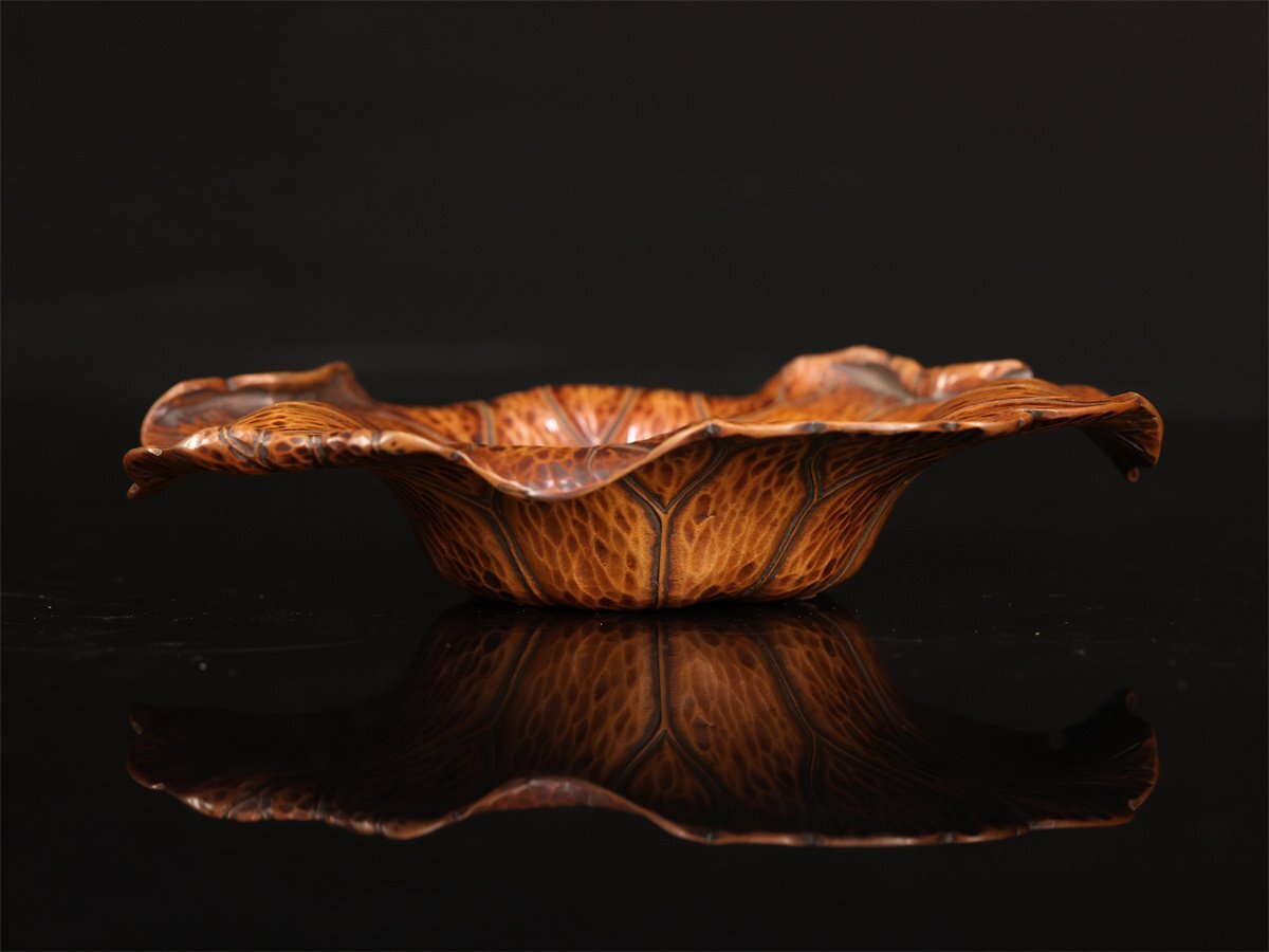 Product name: 【吉】MB816 名工 【晥山人 作】 黄楊木造 荷葉 茶托 5客セット/共箱付 本物保証 美品SZN!