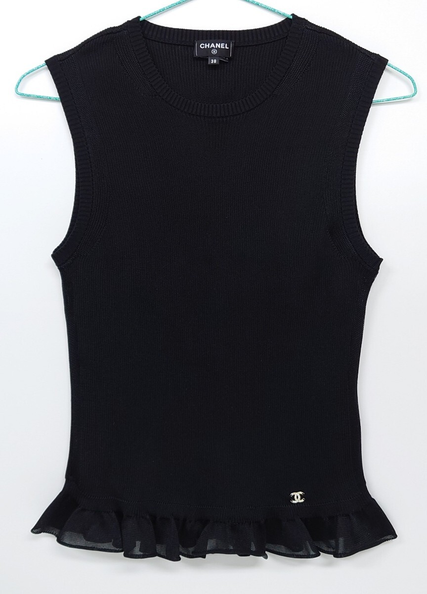 Product name: 【SR-949】 美品 CHANEL ニット フリル サイズ 38 Mサイズ 相当 シャネル トップス ノースリーブ CCマーク ブラック系 黒系 ブランド