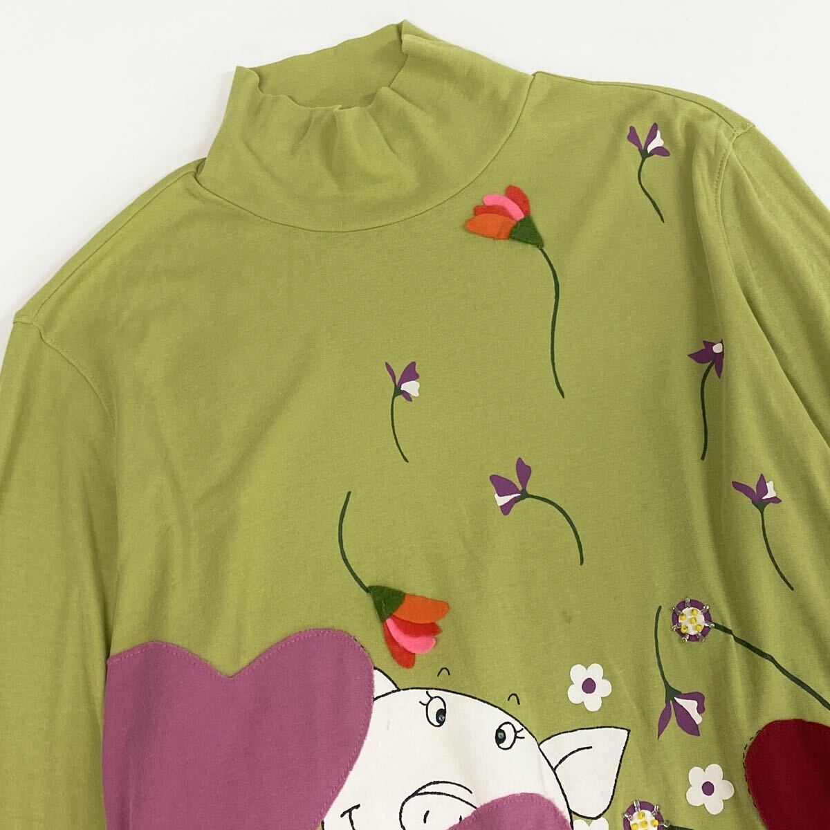 Product name: j24♪1-12 OLLEBOREBLA オレボレブラ アルベロベロ ハイネックカットソー プルオーバー ブタさん 花柄 グリーン 長袖 レディース