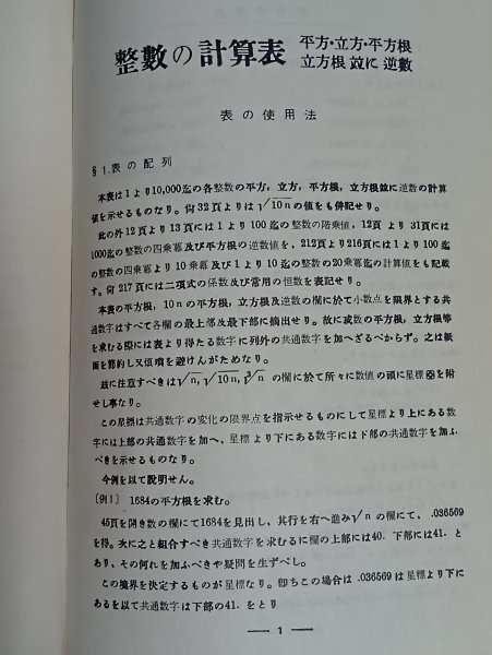 Product name: 昭和35年■整数の計算表-平方・立方・平方根・立方根並に逆数 工学出版社