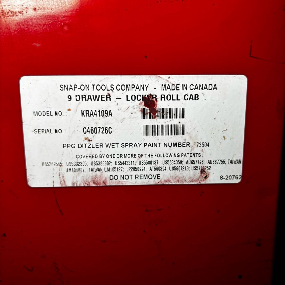 1円スタート【直接引き取り限定】千葉市 SNAP-ON スナップオン ロールキャブ ツールボックスKRA4109A 整備士 収納 キャビネット 工具箱