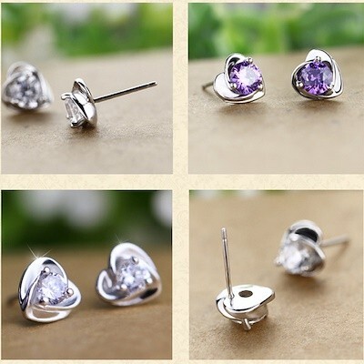【今だけ送料無料!!今だけ1円スタート!!限定生産】刻印/CZアメジストオープンハートピアスC*B