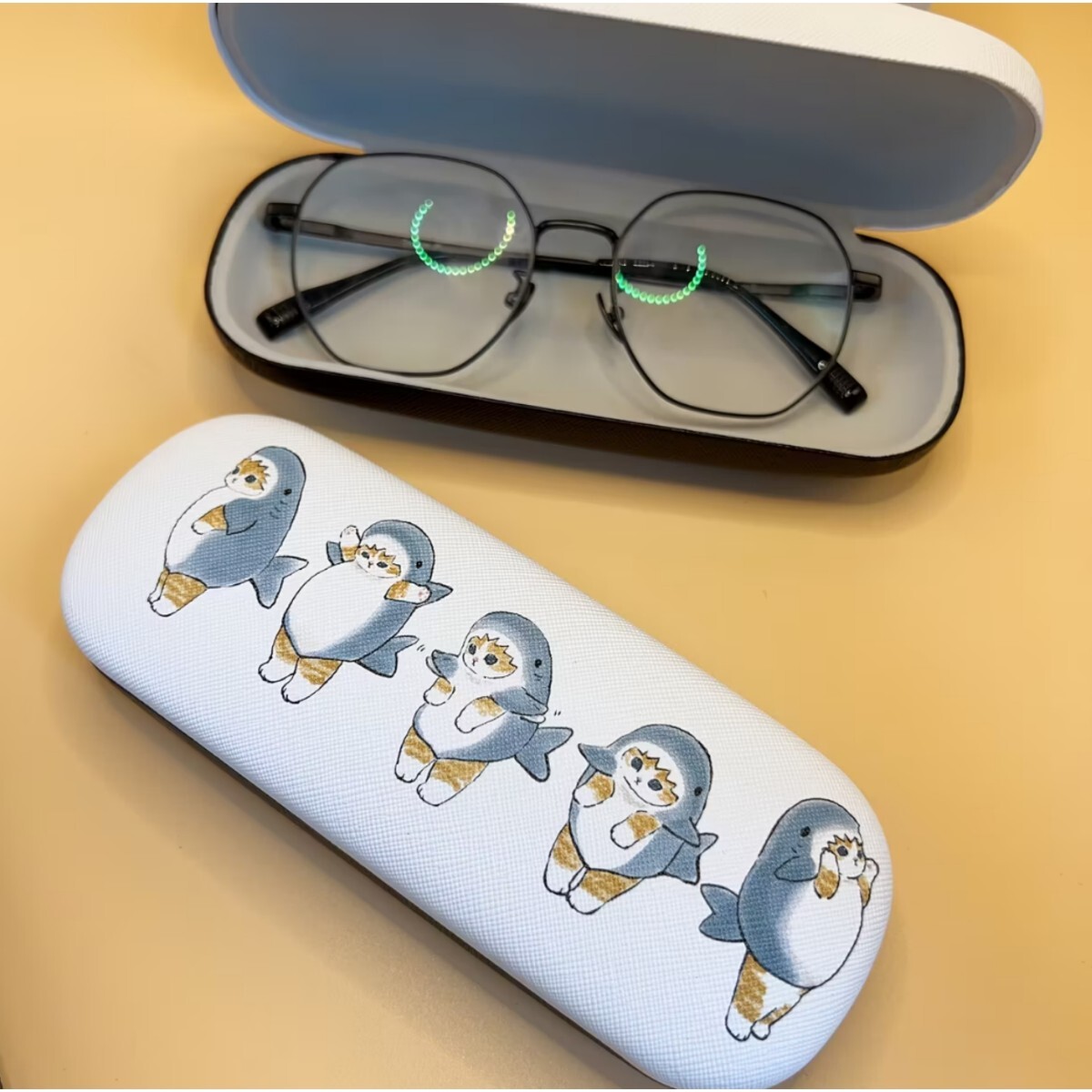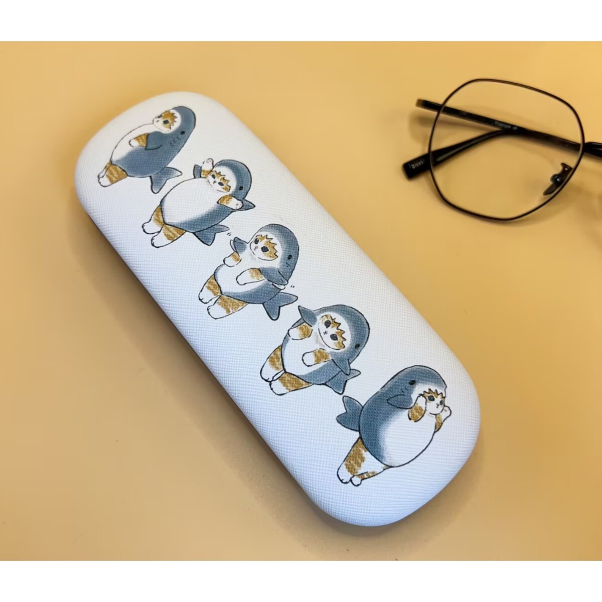 モフサンド サメデザインの猫イラストが可愛いハードメガネケース。サイズは16×6cmとなります。素材はPUレザーです。
