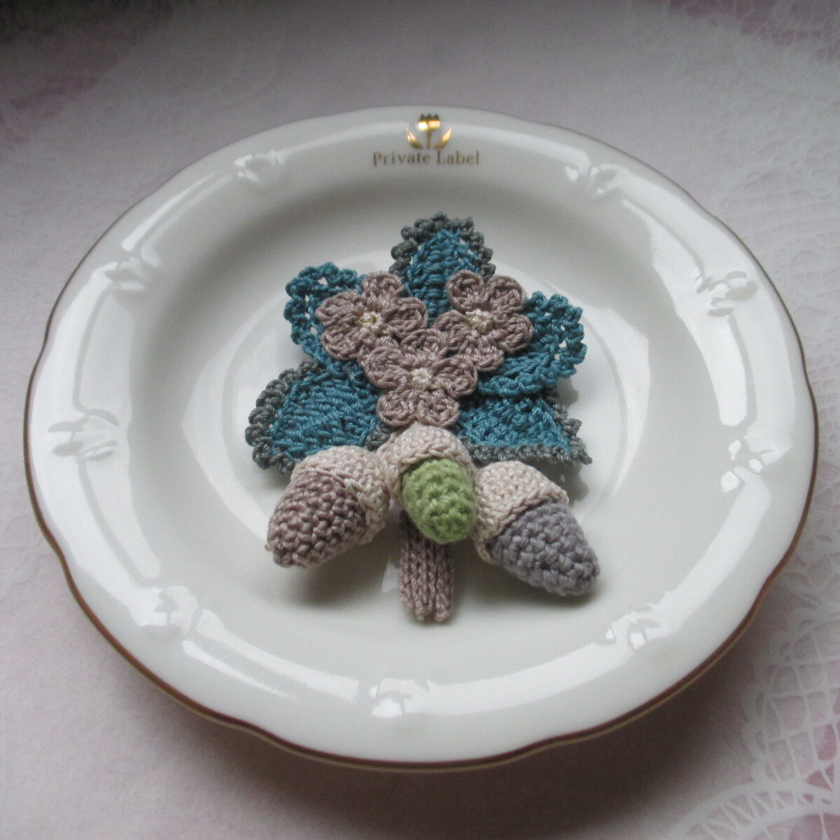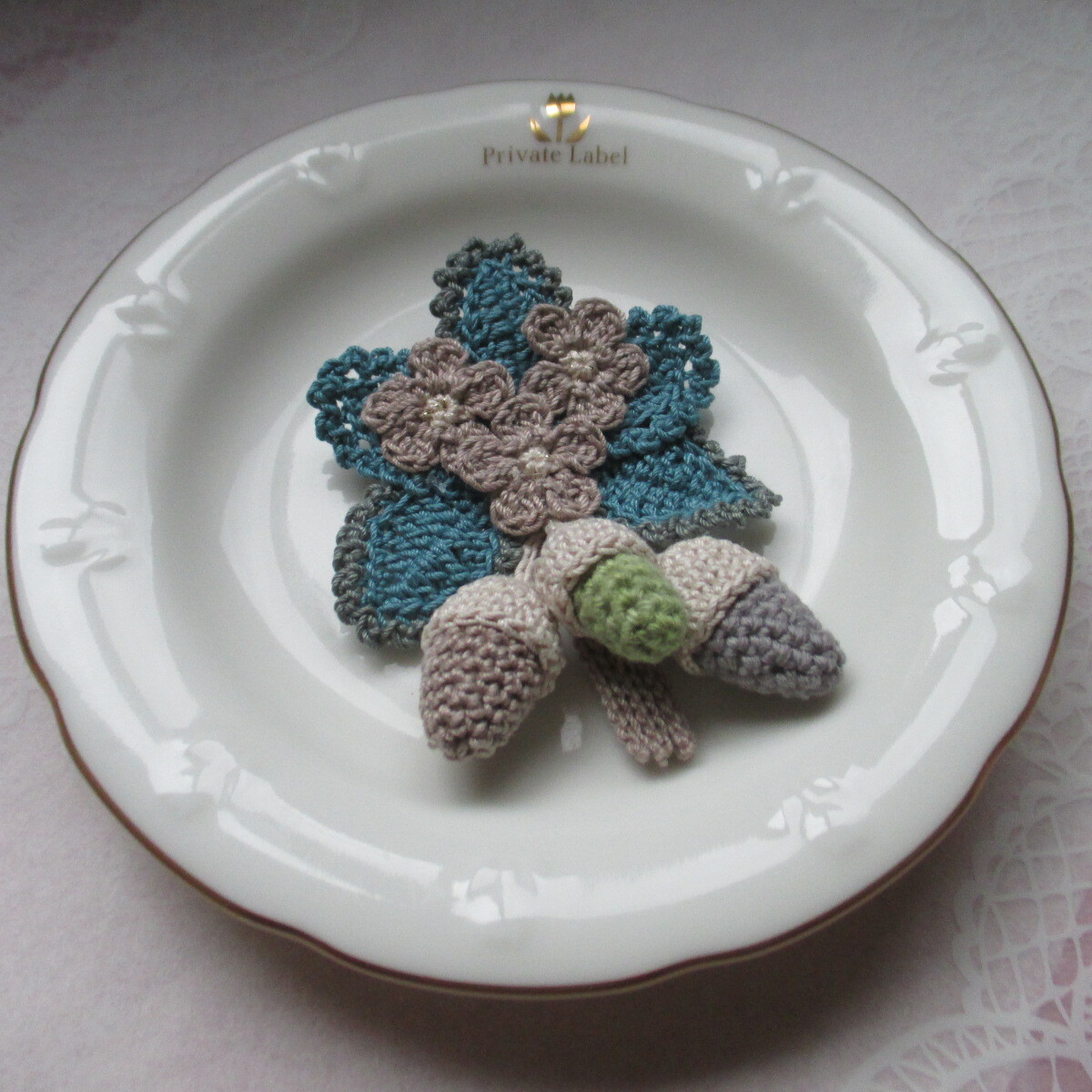 ハンドメイド☆レース編み☆どんぐりのコサージュ、ブローチ①