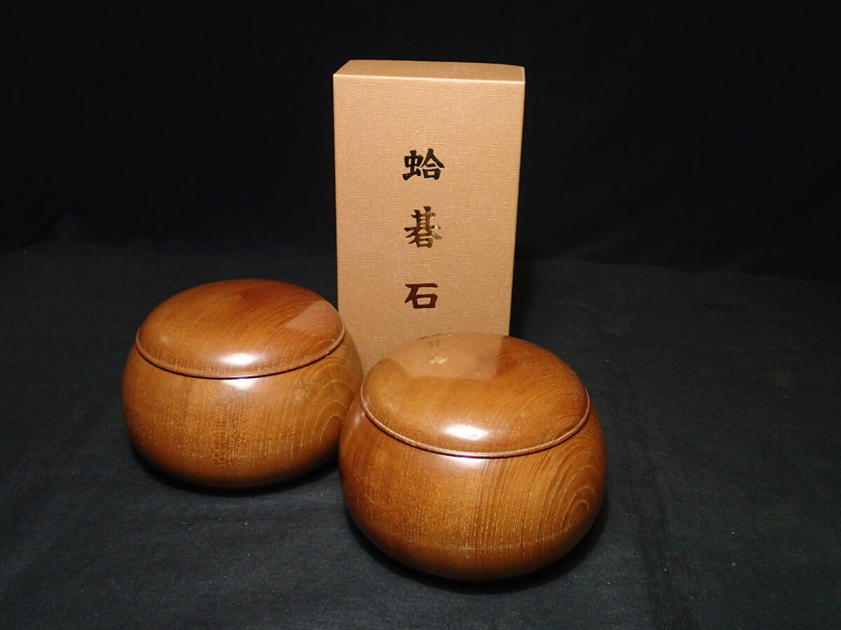 ◇蛤碁石36号『月印』元箱付き!! / 5.2寸超特大碁笥セット◇I4