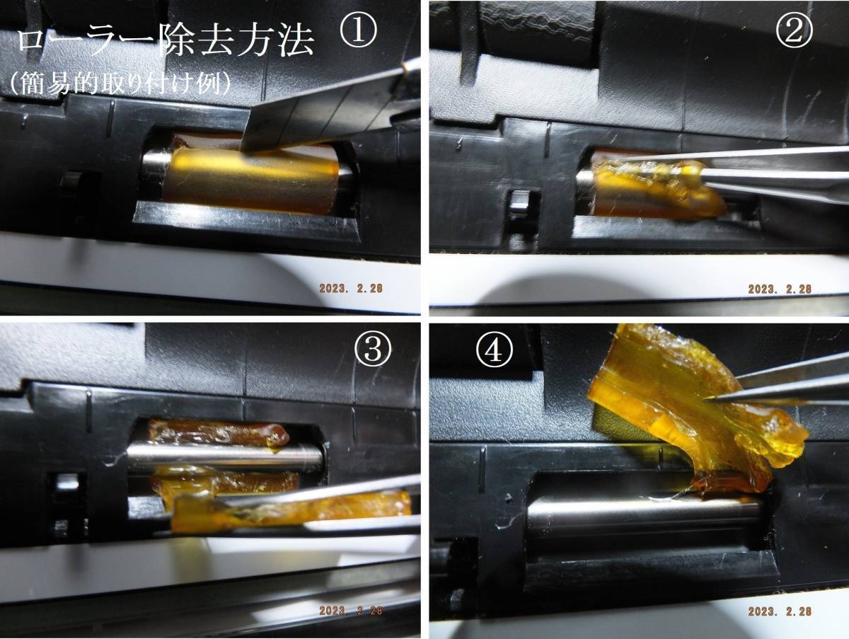 写真の様に劣化してべたついて動作に支障をもたらしていたフィードローラーが新品になります。