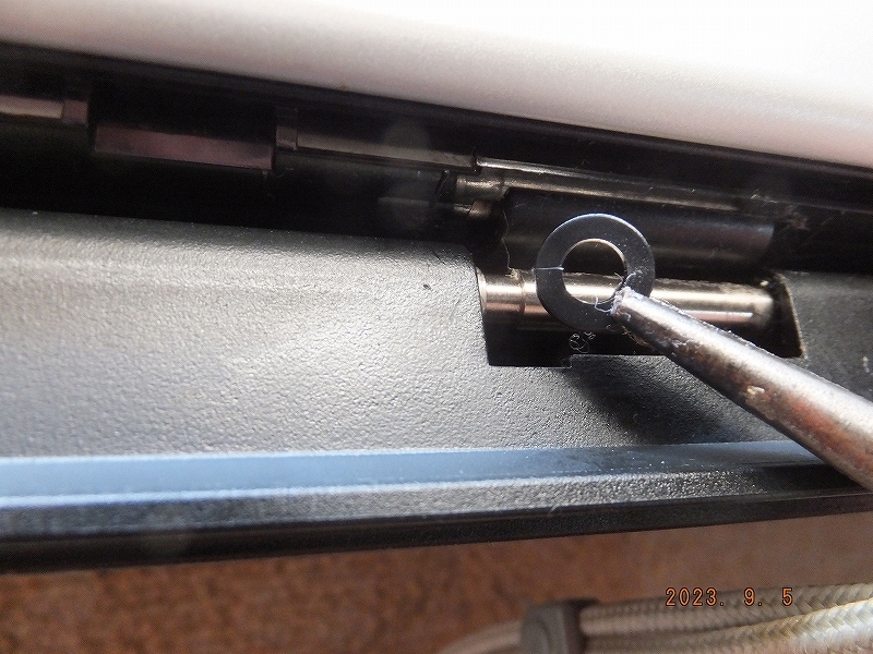 順序はワッシャの切れ目部分を少しずらしてラジオペンチで溝の部分に押し込みます。