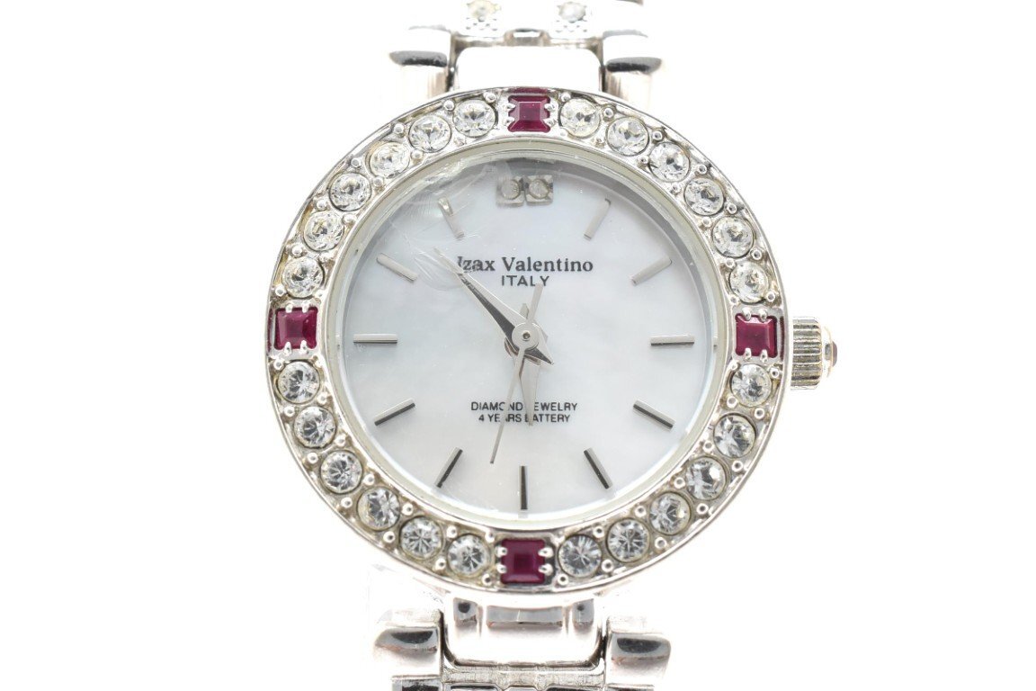 Izax Valentino アイザック バレンチノ クォーツ ラウンド 腕時計 レディース 3針 ホワイト シルバー プラチナ ジュエリー IVL-9100-2