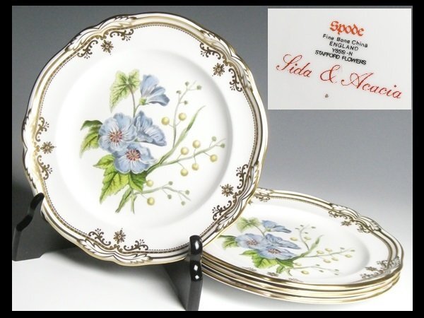 スポード Spode 高級シリーズ スタッフォード フラワーズ 金彩 フラワー 花絵 ① プレート 4枚 n820