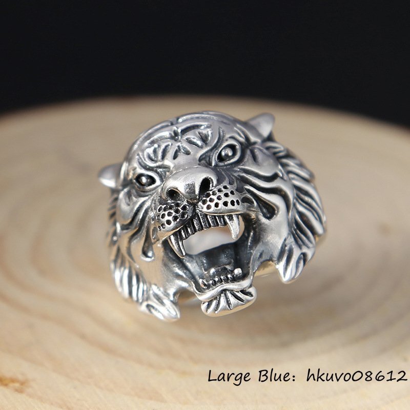 1円スタート★新品 シルバー925 リング 指輪 虎 レトロ 職人手作り アクセサリー 男女兼用 メンズ レディース フリーサイズ 調整可能
