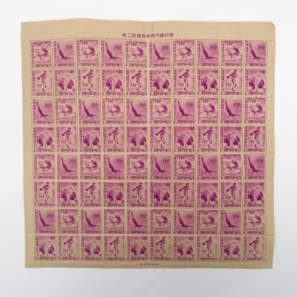Product name: 1円〜 未使用 日本切手 第二回国民体育大会記念 80面シート 田形 計2点 ヒンジ跡無し 4249335