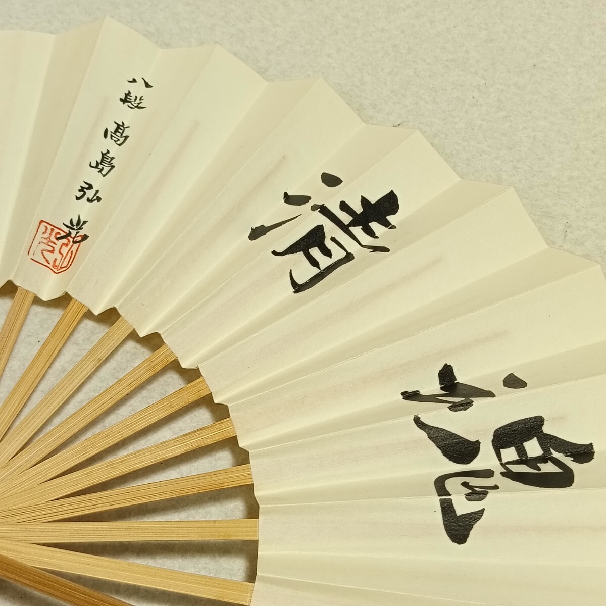 S【日本将棋連盟】八段 髙島弘光 扇子 清魂 飾り扇 記念品 グッズ 名人 毛筆 棋士 たかしまひろみつ 謹製 8段 棋王 棋聖 王将 白扇
