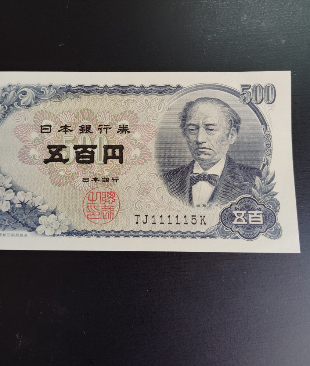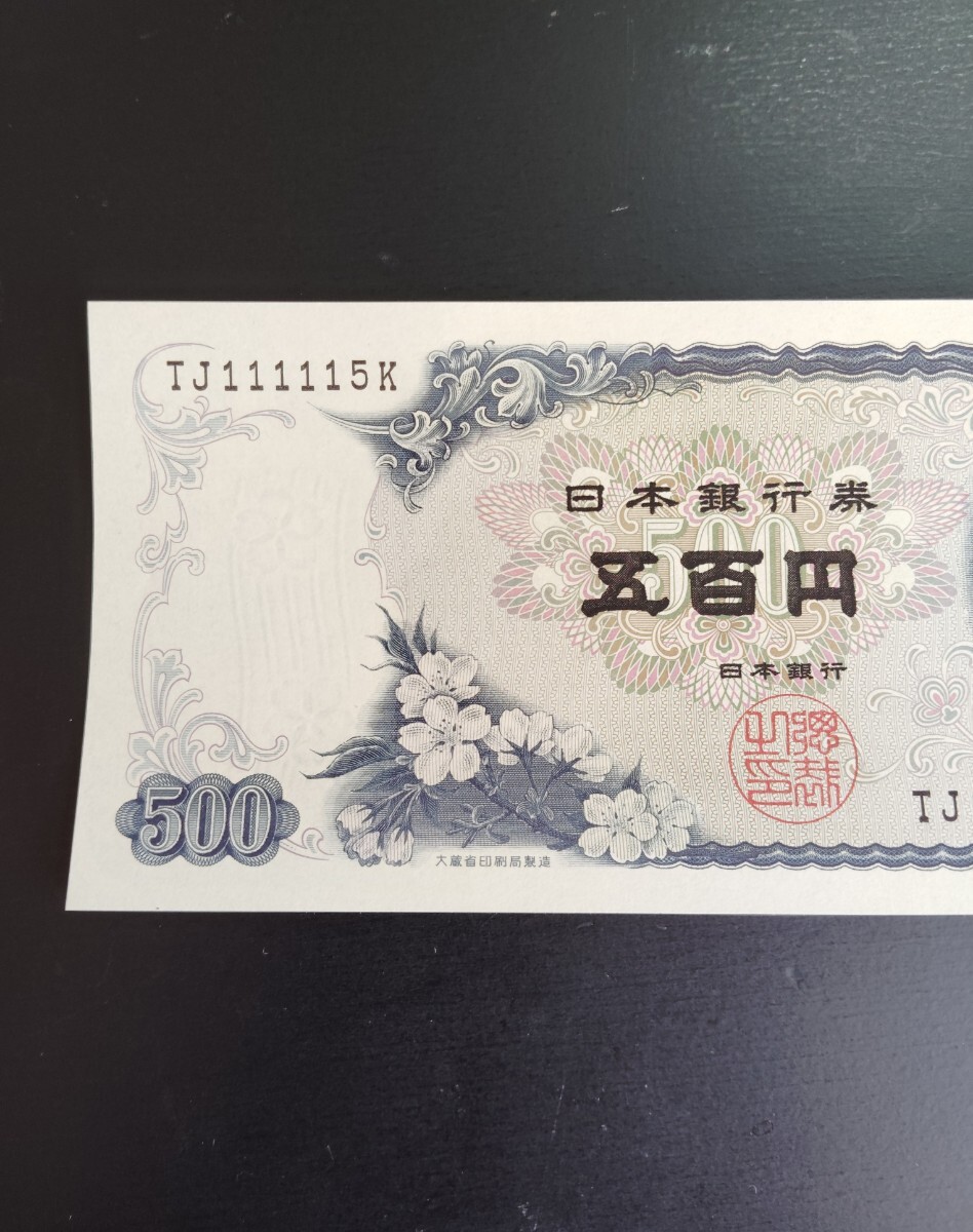 8930 未使用 ピン札シミ焼け無し ゾロ目崩れ TJ111115K 日本銀行券 新岩倉具視 五百円旧紙幣 大蔵省印刷局製造