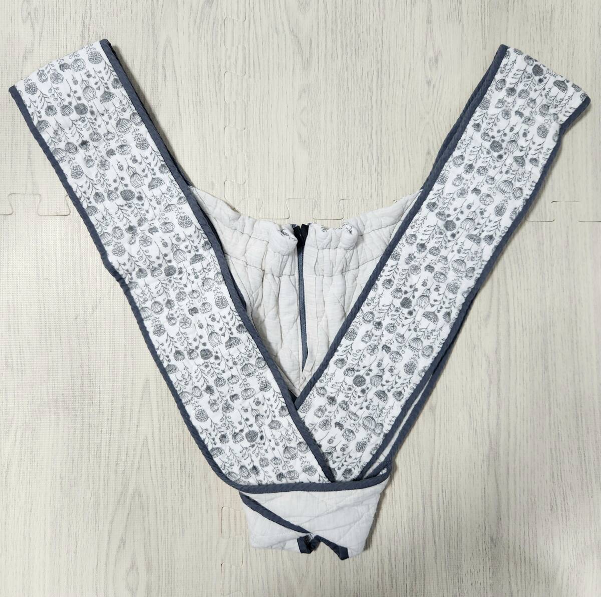 肩に乗る部分の紐を、親指の第一関節くらい肩からはみ出して装着完成です。