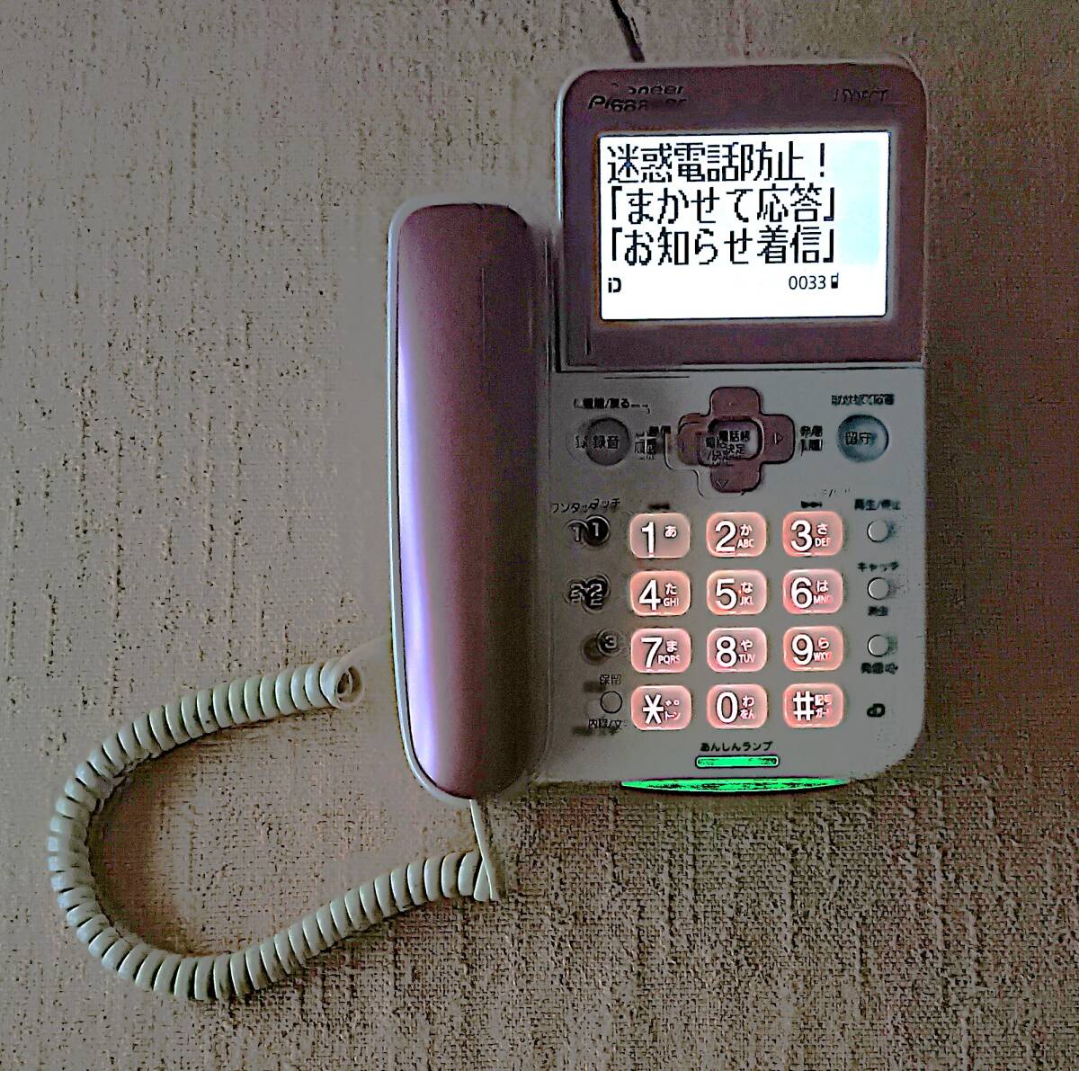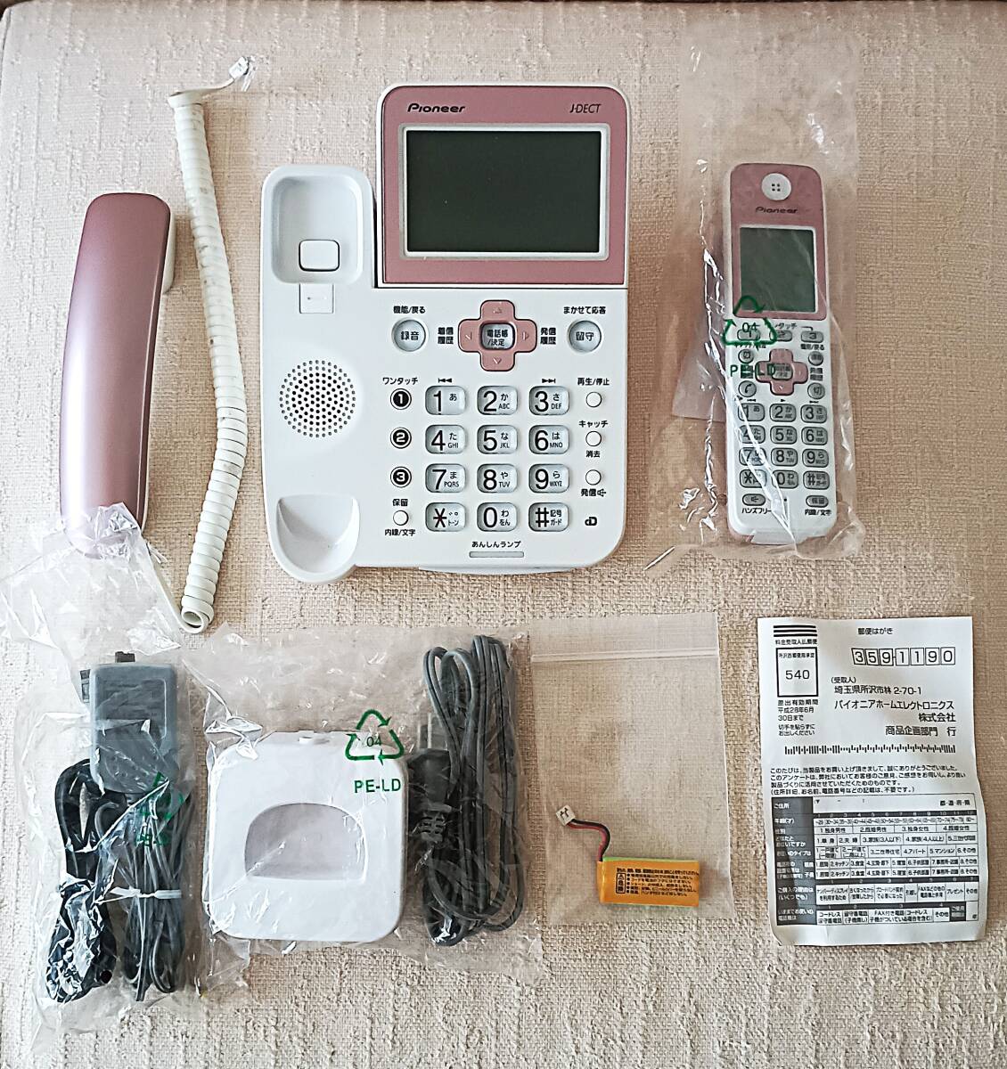 【中古・美品】 パイオニア製 ナンバーディスプレイ対応 デジタル留守番電話 TF-SA70S 本体&子機 コードレスホン