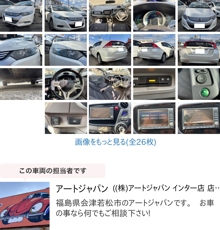 Product name: 【諸費用コミ】:☆福島県☆中古車 平成22年 インサイト 1.3 G ETC バックカメラ ナビ キーレス