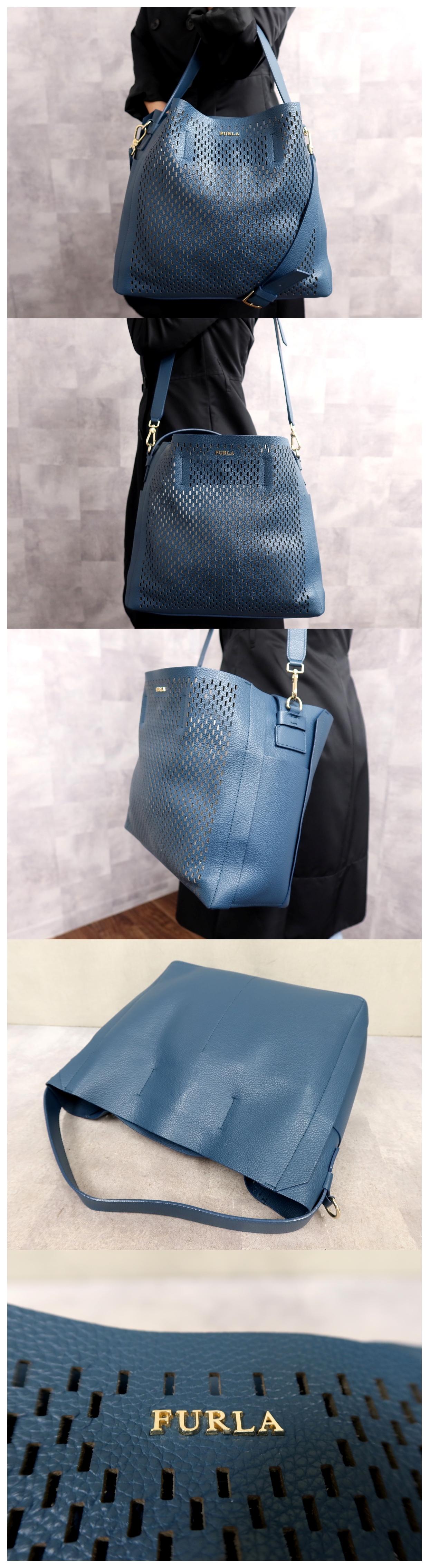 Store 超美品●新品同様●FURLA フルラ●カプリッチョホーボー●カーフ レザー 本革●2way ハンド バッグ●ブルー系●ゴールド金具●A4●Js65274