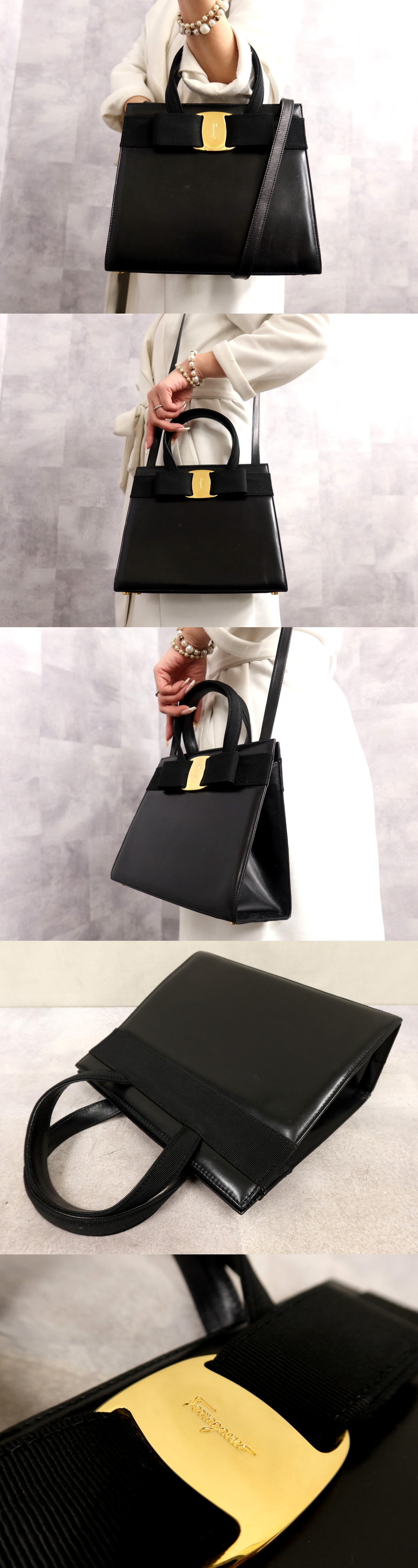 Product name: ●超美品●Salvatore Ferragamo フェラガモ●ヴァラリボン●カーフ レザー 本革●2way ハンド バッグ●黒●G金具●ヴィンテージ●Js65440
