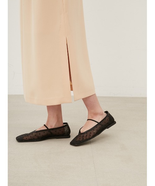 参考商品名:スクエアトゥチュールドットバレエシューズ