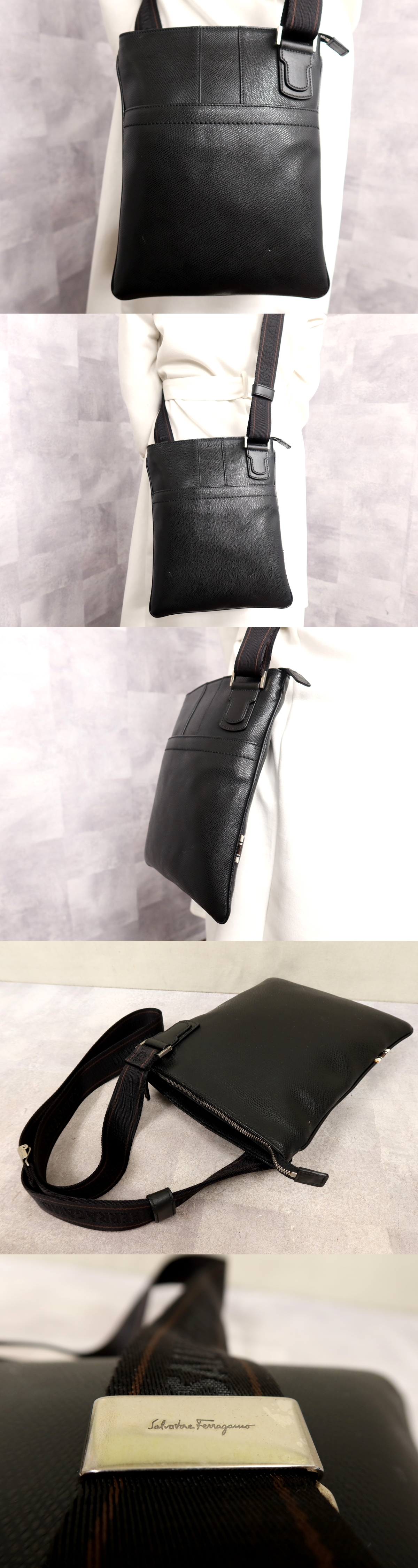 Product name: ●超美品●Salvatore Ferragamo フェラガモ●メンズ●カーフ レザー 本革●ショルダー バッグ●黒●シルバー金具●斜め掛け●収納●Js65657