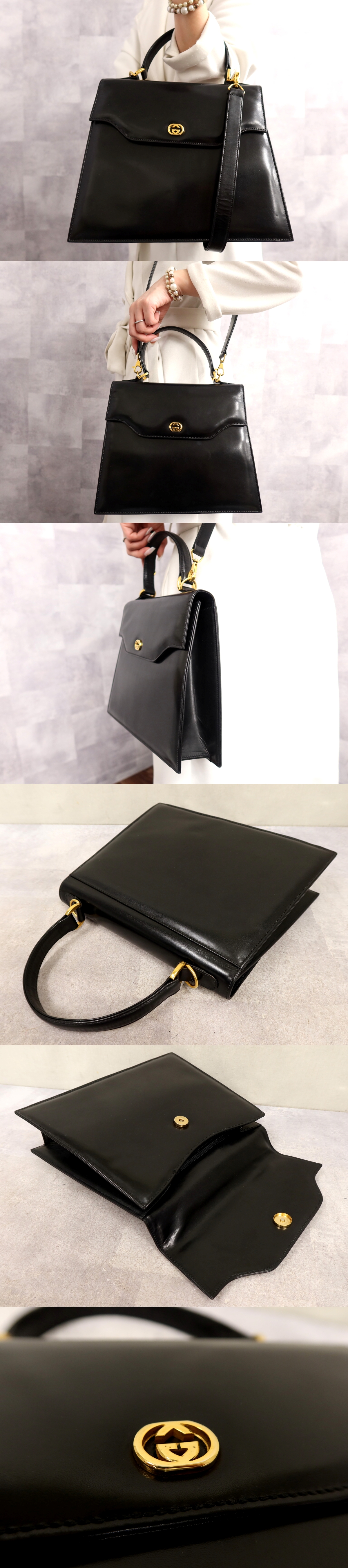 Product name: ●超美品●GUCCI オールド グッチ●フラップ●カーフ レザー 本革●2way ハンド バッグ●黒●ゴールド金具●腕掛け●イタリア製●Js65846