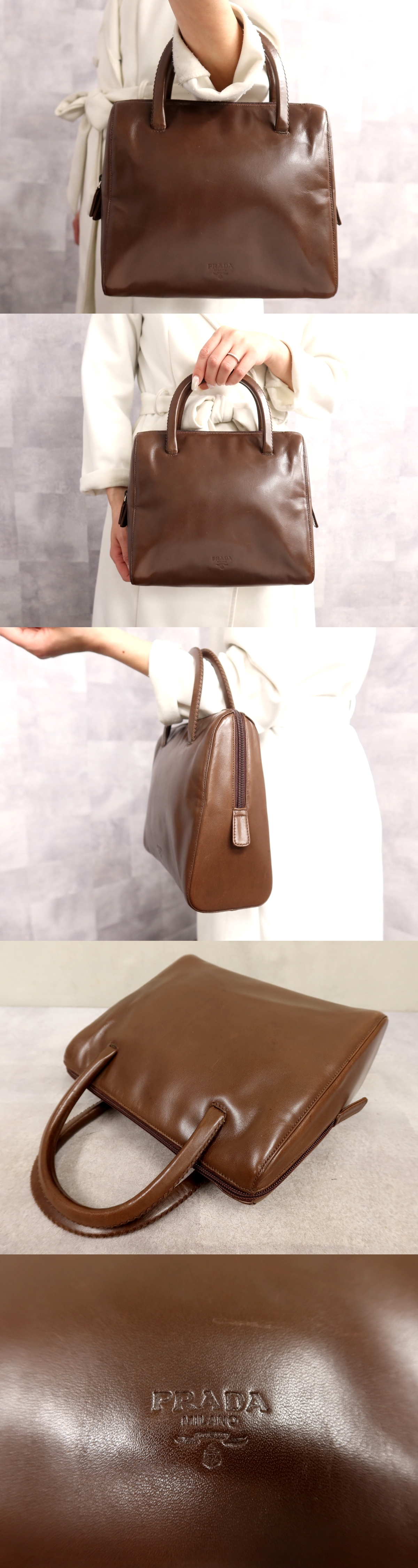 Product name: ●超美品●PRADA プラダ●ロゴ型押し●カーフ レザー 本革●ハンド バッグ●ブラウン●シルバー金具●腕掛け●イタリア製●かばん●Js66110