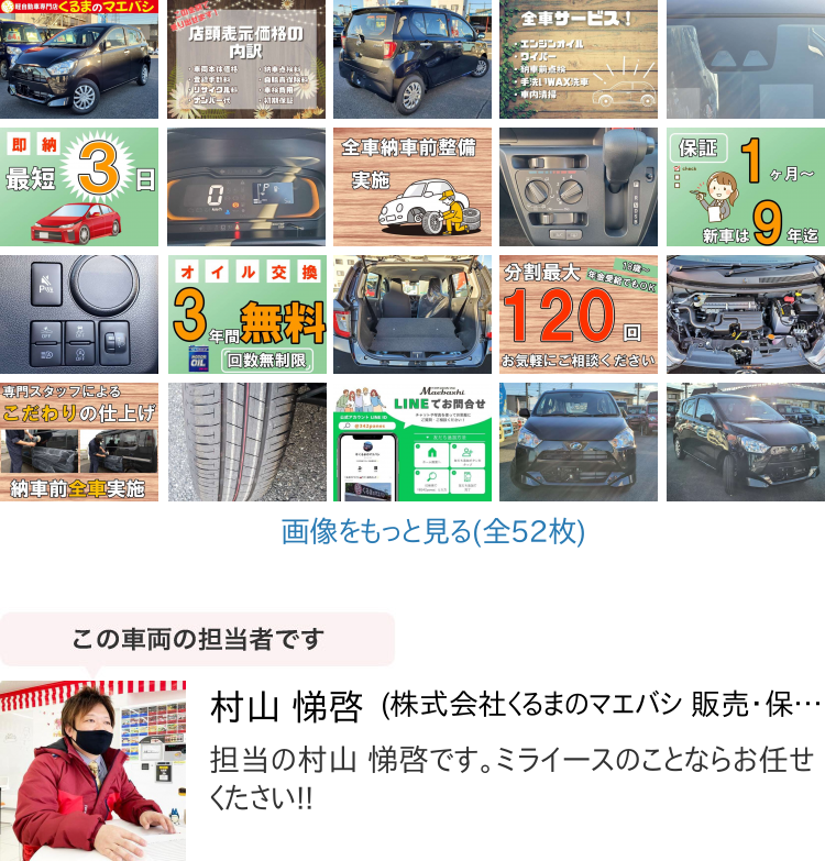 下取りや買取が高い店、持ち出しが安い店、との評価をいただいておりますので、軽自動車はもちろん、お車全般をお探しの方、車検・点検をお考えの方、お気軽にお問い合わせください。