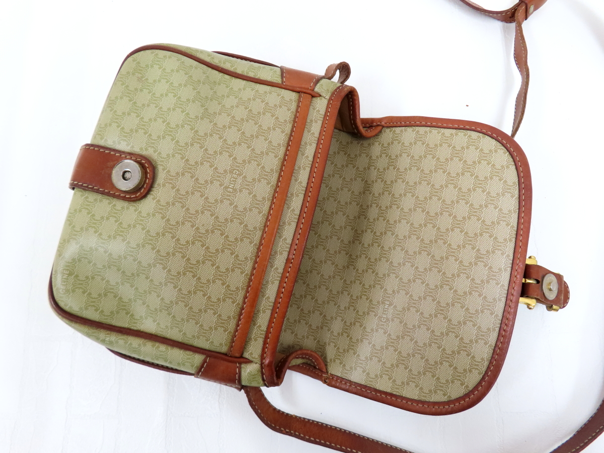 Store ◆美品◆CELINE セリーヌ◆マカダム◆PVC カーフ レザー 本革◆ショルダー バッグ◆ベージュ 茶 ゴールド金具◆ヴィンテージ◆A16459