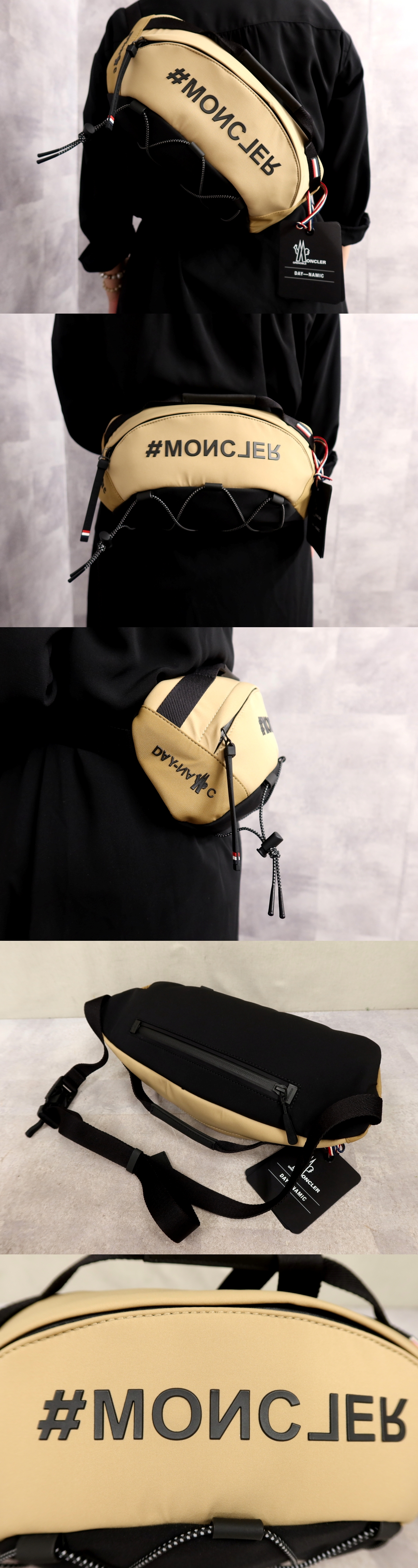 Store ●未使用●MONCLER モンクレール●GRENOBLE グルノーブル●ナイロン●ウエスト ボディ バッグ●ベージュ 黒●斜め掛け●かばん●Js67149